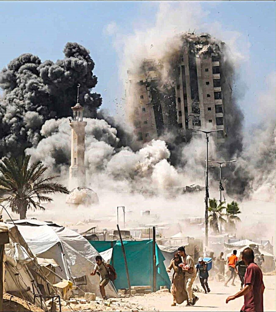 Mitt under mitt debatterande med olika Israelvänner får jag plötsligt en Facebookvän inne i Gaza. Han heter Salah Adlouni, är tidigare anställd på en godisfabrik, och bor nu med sin lilla familj i ett tält i den påstått säkra zonen al Mawazi. Men den israeliska militären hade fört Gazaborna bakom ljuset. Även i al Mawazi faller bomber, och små drönare flyger in mellan tälten och dödar människor. Och Sahlihs farbror (en journalist) hans gravida fru och tre barn, i ett tält i närheten, blir plötsligt samtliga dödade med raketer från den israeliska militären. Detsamma sker med en av Salahs kusiner.